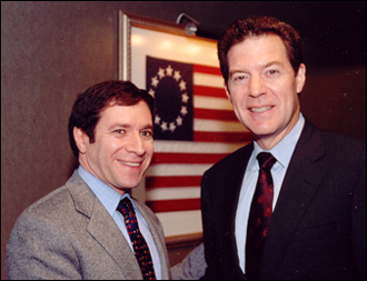 Irwin Katsof greeting Senator Brownback(R-KS) at a recent meeting at IDT Telcom Headquarters in Newark NJ. Katsof had the opportunity to discuss Foreign Relations and issues relating to Defense and appropriations with the Senator